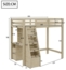 Platzsparendes Hochbett mit integriertem Schreibtisch, Regalen und Schränken – ideal für kleine Räume. Die praktische Stauraumtreppe bietet Platz für Spielzeug, Bücher oder Kleidung. Mit einem stabilen Massivholzrahmen aus Kiefer, Metall, Sperrholz und MDF ist das Bett sowohl funktional als auch altersgerecht gestaltet. Die empfohlene Matratzenstärke liegt zwischen 8 und 12 cm.