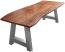 Vollholz Esstisch „Athen“ im Landhausstil mit Baumkante aus Akazie in Nussbaumfarben und einem stabilen silbernen A-Gestell (Artikelnummer: 525007). Die Tischplatte hat die Maße 180 x 90 cm und eine Dicke von 26 mm. Jeder Tisch ist ein Unikat mit einer einzigartigen Holzmaserung, die durch die natürliche Baumkante hervorgehoben wird. Ideal kombinierbar mit verschiedenen Möbelstilen.