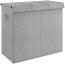 Der faltbare Wäschekorb in Grau ist die perfekte Lösung, um Ihre schmutzige Wäsche ordentlich und dekorativ zu verstauen. Mit den Abmessungen von 64,5 x 34,5 x 59 cm bietet er ausreichend Platz und lässt sich bei Nichtgebrauch platzsparend zusammenklappen. Die 3 herausnehmbaren Innenbeutel erleichtern den Transport zur Waschküche, während der Deckel unangenehme Gerüche fernhält. Hergestellt aus langlebigem Leinenimitat (100% Polyester) und Spanplatte, ist dieser Wäschekorb sowohl robust als auch funktional.