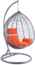 - Elegantes Design – Hellgrauer Korb und Gestell mit orangen Kissen