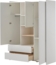 Vipack Kleiderschrank Kiddy 3-türig Kleiderschrank zum Programm Kiddy mit 3 Türen, 2 geräumigen Schubladen und 2 offenen Fächern. Eine ideale Ergänzung im Gäste-, Kinder- oder Babyzimmer, die viel Stauraum bietet. Das Trägermaterial ist hochwertiges MDF, weiß lackiert. Alle Kanten sind gerundet. Hinter der linken Tür befindet sich 1 fester Fachboden und eine Kleiderstange. Mittig ist oben eine Tür mit einem Boden dahinter Fachinnenmaß ca. B: 45 x H: 42 x T: 52 cm, darunter ein Boden in Kiefer natur- Die beiden Fächer haben ein Innenmaß von ca. B: 45 x H: 28 x T: 52 cm. Diese beiden Böden sind nicht verstellbar. Hinter der rechten Tür sind 2 verstellbare Fachböden. Die Fachinnenmaße sind ca. B: 40 x T: 52 cm. Unten befinden sich zwei geräumige Schubladen. Das Schubladen Innenmaß ist ca. B: 81 x H: 13 x T: 39 cm. Zwischen den Schubladen ist der Abstand so bemessen, das man durch hereingreifen und die Schublade problemlos öffnen kann. Die Bodenfreiheit beträgt ca. 6 cm. Der Artikel ist stabil und hochwertig verarbeitet.