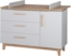 Die roba Wickelkommode mit Wickelansatz 'Caro' macht mit ihrer rückenschonenden Wickelhöhe von 94 cm die Babypflege für Eltern und Baby zum Vergnügen. Die abnehmbare Wickelplatte lässt sich rechts, mittig oder links oben am Wickeltisch montieren. Die gepolsterten roba Wickelauflagen in der Größe 85 cm x 75 cm verwandeln die Wickelkommode in einen kuscheligen Wickelplatz im Babyzimmer. Für sanftes Schließen der Tür und der 3 Schubladen sorgt die eingebaute Soft Close-Technik. Die oberste Schublade des Wickeltisches lässt sich komplett herausziehen und bietet Stauraum für Wickelutensilien. Durch den Vollauszug der oberen Schublade haben Sie bei der Babypflege alles schnell griffbereit. Eine praktische Ergänzung zur Wickelkommode, ist das passende Wandregal aus der Serie 'Caro' (Art. Nr.: 1511789). Mit weiteren Kindermöbeln aus der Serie 'Caro' lässt sich ein stilvolles Kinder- oder Babyzimmer einrichten. Die roba Wickelkommode mit Wickelansatz ist ein wahres Multitalent und leistet Ihnen weitere Jahre gute Dienste. Die stabile Wickelkommode bietet sich als erhöhter Sitzplatz für Ihr Kindergartenkind an, damit Sie in einer bequemen Stehposition mühelos beim Anziehen helfen können. Später entpuppt sich der Wickelplatz als Kommode in Ihrem Wohn- oder Kinderzimmer. Die Wickelkommode mit hochwertigen Massivholzgriffen und ohne sichtbare Schrauben zählt zu unseren schrankbreiten Varianten. Die Wickelkommode ist in Deutschland entwickelt und entspricht den aktuellen Sicherheitsstandards nach EN 12221 – 1+2:2008 + A1:2013. Die Wickelkommode 'Caro' wurde in der EU produziert und ist montagefreundlich. Zusätzlich ist sie eph zertifiziert und trägt das Qualitätssiegel blauer Engel, das garantiert, dass alle verwendeten Materialien höchste Ansprüche an Umwelt-, Gesundheits- & Gebrauchseigenschaften erfüllen. (HxB): 104 x 134,5 cm, Tiefe mit/ohne Wickelansatz: 78/41 cm, Wickelhöhe 94 cm. Korpus und Front lichtgrau. Sockelrahmen und Deckplatte im Dekor 'Goldeiche'.