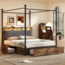 Dieses multifunktionale Smart-Himmelbett mit einer Liegefläche von 140x190 cm vereint modernes Design mit praktischen Funktionen. Der stabile schwarze Metallrahmen und die natürlichen Holzpaneele sorgen für eine elegante Optik. Integrierte LED-Streifen bieten eine individuelle Beleuchtung, während USB- und Type-C-Anschlüsse für eine praktische Nutzung sorgen. Der abnehmbare Baldachinrahmen ermöglicht eine Anpassung an verschiedene Deckenhöhen. Stauraum wird durch einen seitlichen Metallkorb auf Rollen und geräuscharmen Schubladen maximiert.