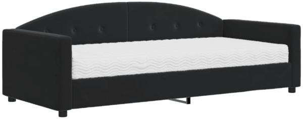 Das vidaXL Tagesbett mit Matratze in Schwarz (90 x 200 cm) ist eine stilvolle und funktionale Ergänzung für Ihr Wohn- oder Schlafzimmer. Tagsüber dient es als komfortables Sofa, während es sich nachts mühelos in ein Bett verwandelt. Die bequeme Schaumstoffmatratze sorgt für optimalen Schlafkomfort. Der Bezug aus weichem Samt und der stabile Rahmen aus Holz und Metall garantieren Langlebigkeit und Eleganz.