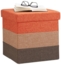 Gepolsterter Hocker mit bunten Streifen in Orange und Dunkelbraun. Dieser multifunktionale Hocker bietet eine Sitzmöglichkeit und gleichzeitig Stauraum mit einem Fassungsvermögen von 38 L. Die Maße betragen 38 x 38 x 38 cm. Aus weichem Leinenimitat gefertigt, sorgt er für hohen Sitzkomfort und ist platzsparend zusammenklappbar. Ideal für Wohnzimmer, Schlafzimmer oder Kinderzimmer.