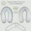 Kuscheliges Stillkissen XXL von Sei Design, ideal für Schwangere und Stillende. Mit ergonomischer Form und einer Größe von 190x30 cm bietet es optimale Stützkraft und Positionierung. Die weiche, silikonisierte Polyester-Faserbällchen-Füllung ist anpassbar und sorgt für hohen Komfort, besonders für Seitenschläfer. Der Bezug aus Jersey und Waffelstoff ist pflegeleicht und allergikerfreundlich, schadstoffgeprüft nach Öko-Tex Standard 100 der Produktklasse 1.