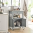 Praktischer Küchenwagen mit einer hochwertigen Edelstahlplatte und Rollen in Grau. Der Wagen aus MDF (E1) bietet viel Stauraum und eine großzügige Arbeitsfläche. Er ist vielseitig einsetzbar, sei es in der Küche, als Drucker- oder Getränkewagen oder zur Aufbewahrung. Die Produktmaße betragen ca. 60 x 92 x 44 cm (BHT).