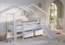 FORREST Buche - Set best. aus halbhohem Hausbett inkl. Dachaufbau und Rollboxen. Die Liegefläche ist 90 x 200 cm inkl. gerader Leiter und einer Rutsche, ideal zum Spielen und Schlafen. Ein massiver Rolllattenrost mit 15 Leisten ist bereits im Lieferumfang enthalten. Ein Abenteuerspielplatz im Kinderzimmer. Der Artikel ist aus massiver europäischer Buche, die Oberfläche ist weiß lackiert. Die schwarzen Schrauben sind sichtbar und setzen einen optischen Akzent. Der Absturzschutz gibt zusätzlich Sicherheit und hat eine fein gearbeitete Sprossen-Optik. Die runden Sprossen haben eine Stärke von ca. 16 mm. Der Abstand vom Boden bis Oberkante Absturzschutz sind ca. 82,5 cm, die Einstiegshöhe bis Oberkante Bettseite ist ca. 50,5 cm und die Höhe von der Oberkante der Bettseite bis Oberkante Absturzschutz ca. 32 cm. Die Leiter mit 1 Trittstufe (Abstand vom Boden ca. 30 cm), hat eine Trittbreite von ca. 35 cm die sicheres Hinauf- und Hinabsteigen ermöglicht. Zusätzlich hat sie seitlich Haltegriffe. Die Rutsche hat eine Breite von 39 cm und 35 cm Innenmaß. Leiter und Rutsche können wechselseitig verbaut werden. Die starken Vierkantstäbe des Bettes und des Dachaufbaus haben ein Maß von ca.: B: 5,5 x T: 5,5 cm. Vorne hat die Dachkante eine Höhe von 135 cm und steigt bis zur Gesamthöhe von 185 cm an. Es darf sich nicht am Dachaufbau hochgezogen werden, oder geschaukelt werden. Der Raum unter der Liegefläche, ist vom Boden bis Unterkante Bettseite ist ca. 41,5 cm hoch. Hier werden die beiden geräumigen Rollboxen untergebracht. Sie laufen auf Rollen und haben Griffaussparungen, wodurch sie einfach zu bewegen sind. Das Innenmaß der Boxen ist ca.: B: 52 x H: 30,5 x T: 36 cm. Die Bodenfreiheit ist ca. 5,5 cm. Die hochwertige Verarbeitung und sehr gute Stabilität zeichnen dieses Bett aus. Die Pfostenstärke ist ca. 55 x 55 mm. Max. Matratzenhöhe ca. 20 cm. Für Kinder unter 4 Jahren nicht geeignet. Die Ware ist zerlegt, zur einfachen Selbstmontage. Die Matratze, Kissen und Dekoration gehören nicht zum Lieferumfang. FSC®-zertifiziert. Das Bett an sich ist ca. B: 207,5 x T: 97,5 cm. Benötigte Stellfläche pro Schublade ca.: B: 57 x H: 32,5 x T: 40 cm. Stellfläche Bett mit Dachaufbau ca. B: 207,5 x H: 185 x T: 175,8 cm.