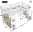 Das Odikalo Hochbett aus Metall bietet mit einer Liegefläche von 140x200 cm und einem stabilen Eisenrahmen eine sichere und langlebige Schlafumgebung für Kinder. Die integrierte LED-Lichtleiste sorgt für eine magische Atmosphäre, während der offene Stauraum und die praktischen Regalebenen die Raumnutzung maximieren. Mit einem Gewicht von bis zu 300 kg und einem kreativen Design fördert es die Fantasie und das Spielen.