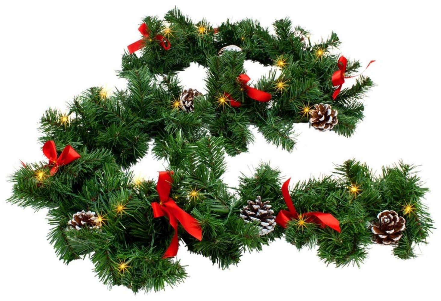 - 1x LED Tannengirlande mit Zapfen und Schleifen - 274 cm / 50 LED