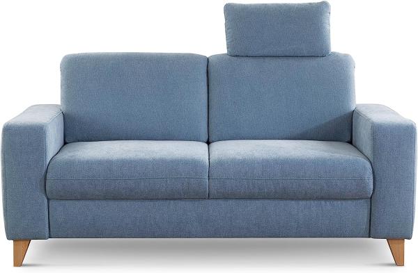 CAVADORE 2er Sofa Lotta / Skandinavische 2-Sitzer-Couch mit Federkern, Kopfstütze und Holzfüßen / 173 x 88 x 88 / Webstoff, Hellblau