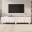 Präsentieren Sie Ihr Home-Entertainment stilvoll mit dem KLAM HOME Lowboard. Dieses moderne TV-Schrank bietet mit seinen Abmessungen von 180 x 40 x 45 cm ausreichend Platz für Fernseher bis 80 Zoll. Die hochwertige MDF-Oberfläche in Weiß mit Holzoptik-Akzenten und die stabilen 6 Kugelfuß-Metallbeine sorgen für ein elegantes Erscheinungsbild und eine Tragkraft von bis zu 30 kg. Ideal für Familien und moderne Wohnungen.