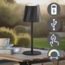 Die Akku LED Tischleuchte DIAZ vereint Funktionalität und stilvolles Design in einem kompakten Format von 21 cm. Diese kabellose Leuchte aus schwarzem Kunststoff bietet blendfreies Licht, das nach oben und unten strahlt. Über den Touchsensor können Sie die Helligkeit in 3 Stufen regulieren und die Lichttemperatur von Warmweiß (2700 Kelvin) bis Tageslichtweiß (6000 Kelvin) anpassen. Mit einer Ladezeit von 3-4 Stunden und einer Leuchtdauer von etwa 4 Stunden ist sie ideal für Innen- und Außenbereiche.