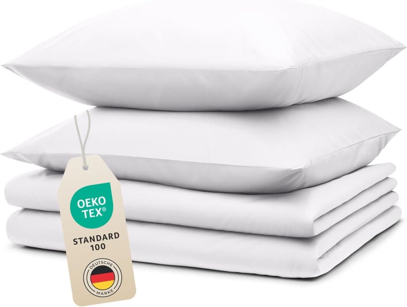 Blumtal Bettwäsche 135x200 4teilig - aus Atmungsaktivem Mikrofaser - 2X Bettbezug 135x200 cm + 2X Kissenbezüge 80x80 cm - Superweiches Bettwäsche-Set, Oeko-Tex Zertifiziert - Weiß