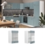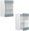 Der Vicco Küchenglasschrank in Blau-Grau/Weiß ist ein hängender Geschirrschrank, der mit seinen kompakten Maßen von 40 cm Breite, 60 cm Höhe und 31 cm Tiefe optimalen Stauraum für Küchenutensilien und Geschirr bietet. Hergestellt aus pflegeleichter 16 mm Spanplatte mit Melaminharzbeschichtung, vereint er Funktionalität und ansprechendes Design.
