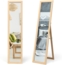 2 in 1 Ganzkörperspiegel Standspiegel und Wandspiegel mit Holzrahmen 37 x 155 cm Natur