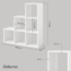 Das Standregal weist die Maße von 98 cm (H), 30 cm (T) und 98 cm (B) auf und bietet für die Aufbewahrung Ihrer persönlichen Gegenstände insgesamt sechs geräumige Würfelfächer, mit denen Sie Ihre Sammlungen und Fotos zur Schau stellen können. Dadurch stellt 'Aras' ausreichend Platz für Bücher, Hefte oder Dekorationsartikel zur Verfügung, passt aber zugleich in kleinere Räume und sorgt dort für eine rationale Ausnutzung der verfügbaren Quadratmeter.
