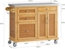 Ein praktischer Küchenwagen aus hochwertigem Bambus mit Edelstahlarbeitsplatte. Mit Maßen von ca. 115 x 92 x 46 cm und einem Gewicht von ca. 48kg bietet er eine Belastbarkeit von bis zu 75kg. Der Wagen verfügt über vier Schubladen, einen Geschirrschrank und einen Handtuchhalter. Dank großer Gummirollen ist er leicht zu bewegen.
