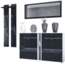 Entdecken Sie das Garderoben-Set Orlando, eine stilvolle Lösung für Ihren Eingangsbereich. Das Set umfasst ein Garderobenpaneel mit acht Garderobenhaken, einen Schuhschrank für bis zu 24 Paar Schuhe und einen eleganten Wandspiegel. Die abgerundeten Kanten und die pflegeleichte Oberfläche sorgen für eine harmonische Integration in jeden Flur und eine einfache Reinigung.
