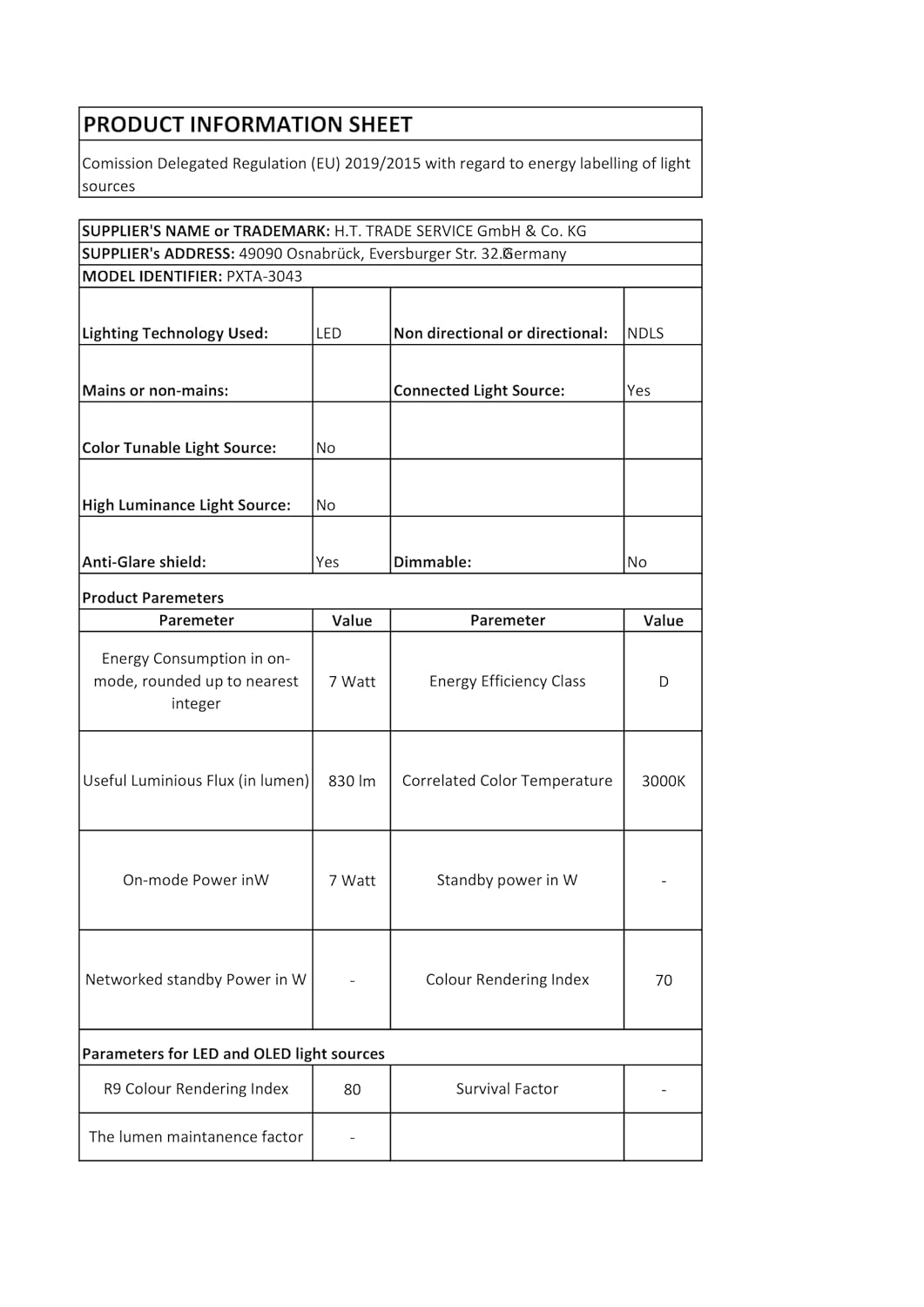- Leuchtmittel im Lieferumfang nicht enthalten