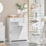 Gewicht: ca. 28kg, Belastbarkeit: bis 70kg; Material: MDF(E1), Korb aus Vlies, lackiert; Produktmaße: BHT ca. : 78 x 90 x 38 cm (Siehe Abbildung); Paketmaße:95 x 18 x 44 cm Die schmutzige Wäsche kann hinter verschlossener Tür verschwinden und ist außerdem griffbereit und flexibel im Handling. Die beiden Wäschesäcke sind herausnehmbar. Der Wäscheschrank bietet Ihnen zwei Schubladen für allerlei Zubehör oder auch Pflegeartikel diverser Art. Verschiedenfarbige Griffe im Lieferumfang enthalten. Schwarz / Silber Weitere Wäschetruhe, die Sie bei uns erwerben können: BZR21-W (ein Wäschesack), FSS66-WN(Bambus) und FSR40-W(Weiß)