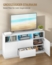 Dieser moderne TV-Schrank in Weiß bietet nicht nur Platz für Fernseher bis 65 Zoll, sondern auch eine anpassbare RGB LED-Beleuchtung mit 25 Farben. Mit seinen Maßen von 147 x 40 x 76 cm und zwei Schubladen sowie drei offenen Fächern sorgt er für Ordnung und Stil in Ihrem Wohnzimmer oder Schlafzimmer. Das intelligente Kabelmanagement und die robuste Bauweise aus Spanplatten garantieren Langlebigkeit und ein aufgeräumtes Erscheinungsbild.