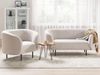 Gemütliches Sofa-Set im Art-Déco-Stil mit einem eleganten, beigen Polsterbezug. Das 3-Sitzer Sofa und der Sessel bieten hohen Sitzkomfort und sind ideal zum Entspannen. Die geschwungene Form und die schwarzen Metallfüße verleihen dem Set einen luxuriösen Charakter. Hergestellt aus strapazierfähigem Polyester und mit einer Schaumstoffdichte von 24 kg/m³ ausgestattet, ist dieses Set die perfekte Ergänzung für Ihr Wohnzimmer.