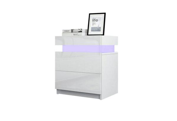 CLIPOP Nachtkommode Hochglanz-Schrank (1 Nachtkonsole), 2 Schubladen Beistelltisch Inkl. LED für Schlafzimmer Bild 1