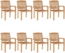 Verleihen Sie Ihrem Esszimmer, Garten oder Ihrer Terrasse mit diesem Set aus 8 stapelbaren Gartenstühlen aus massivem Teakholz einen rustikalen Charme. Die Stühle sind aus extrem haltbarem, fein geschliffenem Teakholz gefertigt, das für seine Festigkeit und Witterungsbeständigkeit bekannt ist. Jedes Kissen sorgt für zusätzlichen Komfort und kann mit 2 Bändern am Stuhl befestigt werden. Die Stühle sind leicht zu reinigen und ideal für den Innen- und Außenbereich.