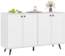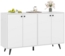 Entdecken Sie die COSTWAY Kommode, ein stilvolles Buffet-Sideboard in Weiß, das mit 4 Türen und 2 verstellbaren Regalen ausgestattet ist. Mit Gesamtmaßen von 127,5 x 38 x 80 cm bietet es ausreichend Platz für Bettwäsche und Geschirr. Die Kombination aus Holzwerkstoff, MDF, Metall und Kunststoff sorgt für Stabilität und Langlebigkeit. Ideal für Wohnzimmer, Essbereich oder Flur, vereint es Funktionalität und modernes Design.