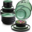 SÄNGER Steingut Geschirrset Greenwich, 24-teilig für 6 Personen, vereint Eleganz und Funktionalität. Inspiriert vom historischen Stadtteil Greenwich in London, besticht jedes Stück durch die satte grüne Farbgebung und den charakteristischen schwarzen Rand. Das Set ist spülmaschinen- und mikrowellengeeignet, robust und langlebig – ideal für stilvolle Dinnerpartys oder entspannte Familienabende.