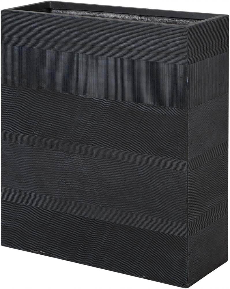 Moderner, schwarzer Pflanzkübel THIMENA in rechteckiger Form (80 x 30 x 92 cm) für Innen- und Außenbereiche. Die strukturierte Oberfläche sorgt für ein einzigartiges Design. Mit Abflusslöchern, UV-Beständigkeit und Temperaturbeständigkeit ist dieser Kübel ideal für verschiedene Umgebungen geeignet.