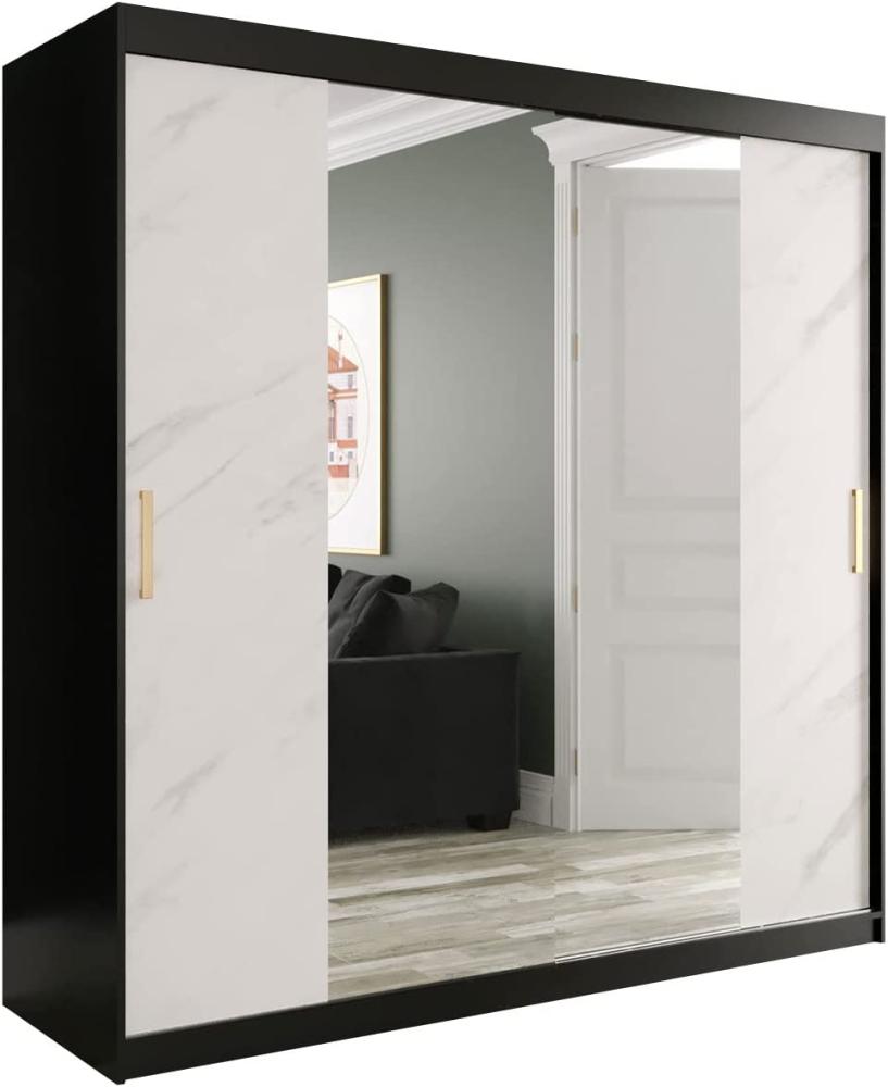 Kleiderschrank Kamoga T1 200 (Schwarz / Marmor Weiß + Gold, ohne Schubladen)