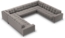 Die Micadoni Wohnlandschaft Mamaia ist ein großzügiges U-förmiges Sofa, das mit einer Breite von 337 cm und einer Tiefe von 256 cm zum Mittelpunkt Ihres Wohnzimmers wird. Der stilvolle Samtstoff in Hellgrau und die charakteristische Steppung sorgen für ein modernes und gemütliches Ambiente. Mit einer maximalen Belastung von 800 kg und 9 Sitzplätzen bietet es ausreichend Platz für gesellige Runden und entspannte Abende.