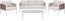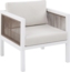 Modernes Sofa mit 2 Sesseln aus weißem Aluminium, inklusive Tisch und Kissen. Genießen Sie sonnige Momente bei bestem Komfort. Die Konstruktionen des Sofas, der Sessel und des Couchtischs sind komplett aus Aluminium gefertigt und mit einer robusten Tischplatte aus Sicherheitsglas ausgestattet. Die beigen Sitzauflagen und Rückenkissen sorgen für zusätzlichen Komfort. Der Bezug ist abnehmbar und waschbar. Die langlebigen Olefinseile bieten Festigkeit und UV-Beständigkeit.