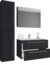 Der VCM Badmöbel Waschtisch Badinos 917113 in Schwarz bietet eine stilvolle und funktionale Lösung für Ihr Badezimmer. Mit den Maßen H. 151 x B. 113 x T. 46 cm umfasst das Set einen Unterschrank mit zwei Schubladen, ein modernes Waschbecken aus robuster Keramik, einen Spiegelschrank aus ESG-Sicherheitsglas sowie einen Hochschrank. Die Kombination aus hochwertigen Materialien und durchdachtem Design sorgt für ein ansprechendes Ambiente.