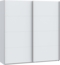 Moderner Kleiderschrank mit 2 Schwebetüren aus Holzwerkstoff in Weiß. Mit einer Breite von 200,1 cm, einer Höhe von 210,5 cm und einer Tiefe von 62,9 cm fügt sich der Schrank harmonisch in Ihre Einrichtung ein. Die klare Linienführung und die hochwertige Verarbeitung garantieren Langlebigkeit und Komfort. Ideal für Schlafzimmer, Eingangsbereiche oder Flure.