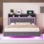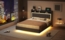 Dieses Polsterbett mit einer Liegefläche von 140x200 cm vereint klassische Eleganz mit modernen Funktionen. Der graue Leinenbezug und das hohe, gepolsterte Kopfteil schaffen eine harmonische Atmosphäre. Integrierte LED-Leuchten und eine USB-Steckdose bieten zusätzlichen Komfort, während der Stauraum am Kopfende für Ordnung sorgt. Die stabile Konstruktion aus Holz und Metall gewährleistet eine Belastbarkeit von bis zu 250 kg. Der Lattenrost ist im Lieferumfang enthalten.