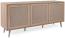 Sideboard im Rafia-Geflecht Dekor mit Massivholzfüßen. Skandinavische Serie mit einem echt wirkenden Dekor im Bast-Look. Der Korpus im Dekor Sonoma Eiche und Rahmenfronten auf Gehrung geschnitten. Die konisch angelegten Füße bestehen aus Massivholz Eiche.