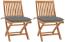 Diese stilvollen Gartenstühle aus massivem Teakholz sind die ideale Ergänzung für Ihren Außenbereich. Mit einem zeitlosen Design und hochwertiger Verarbeitung bieten sie Langlebigkeit und Komfort. Die Stühle sind platzsparend zusammenklappbar und mit bequemen, grauen Sitzkissen ausgestattet. Teakholz ist besonders robust und witterungsbeständig, was es zur perfekten Wahl für Gartenmöbel macht.