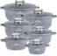 Das Zilner Topf-Set besteht aus sechs eleganten grauen Töpfen mit einer steinüberzogenen Granitbeschichtung. Hergestellt aus hochwertigem Aluminiumguss, bietet es eine hervorragende Wärmeleitung und ist für alle Herdarten geeignet. Mit einem Volumen von 1,3 L, 2,3 L, 2,3 L, 3,2 L, 4,5 L und 6,8 L ist es ideal für die Zubereitung gesunder Gerichte. Die Töpfe sind kratzfest, korrosionsbeständig und leicht zu reinigen.