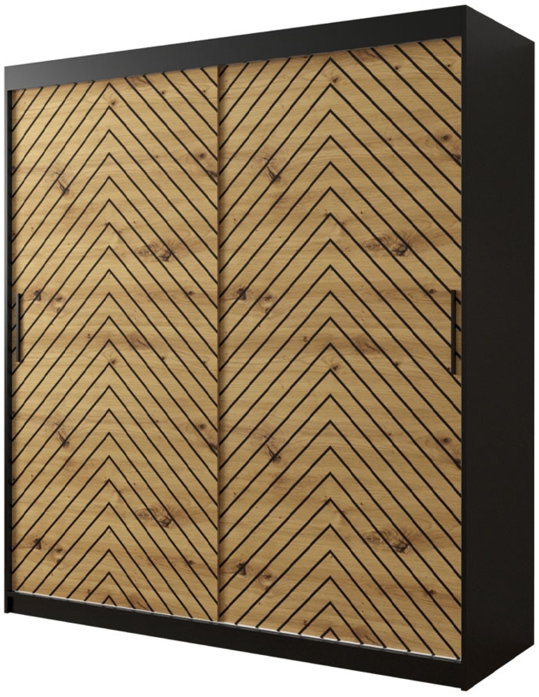 Kleiderschrank Sonter I 180 (Farbe: Schwarz / Artisan Eiche + Schwarz, Größe: 180 cm, mit Schubladen)