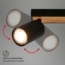 Entdecken Sie die Briloner Leuchten Deckenleuchte TIB, einen eleganten 2-flammigen Deckenspot in Schwarz mit Holz. Diese aus Metall und Holz gefertigte Leuchte bietet eine blendfreie und effiziente Beleuchtung durch zwei LED/GU10 Leuchtmittel mit bis zu 9 W (Leuchtmittel nicht im Lieferumfang enthalten). Die schwenk- und drehbare Funktion ermöglicht eine flexible Lichtausrichtung. Mit kompakten Maßen von 155 x 55 x 255 cm und der IP20-Zertifizierung ist sie ideal für trockene Innenräume.