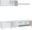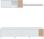 [ Komponenten ] Das Wohnzimmer-Set Ethna besteht aus einem 2 m langen TV-Lowboard, einem Hängeregal mit einem Fach und 2 Türen und einem Außenregal. Der TV-Schrank verfügt über 4 Türen in verschiedenen Größen für mehr Funktionalität und Kabeldurchführungen. [ Vielseitiges ] Wohnzimmer-Set Ethna: TV-Lowboard (200 cm lang) mit 4 Türen in unterschiedlichen Größen – bietet großzügigen Stauraum und integrierte Kabeldurchführungen für Ihre Multimedia-Geräte Hängeregal mit 1 offenem Fach und 2 Türen – ideal für Bücher, Deko oder Zubehör Außenregal zur flexiblen Wandmontage – schafft zusätzlichen Platz und Designakzente Perfekte Kombination aus Funktionalität und modernem Stil für Ihr Wohnzimmer. [ Umweltfreundlich ] Hergestellt aus hochwertigen, langlebigen Melamin-Spanplatten. Produkt mit der PEFC-Zertifikat (Programme for the Endorsement of Forest Certification - Programm zur Förderung der Waldzertifizierung). Hergestellt in Spanien. [ Alltagstauglich ] Pflegeleichte, widerstandsfähige Oberfläche – dank der nicht porösen Melaminbeschichtung lässt sich das Material schnell und mühelos mit einem feuchten Tuch reinigen. Ideal für den täglichen Gebrauch. [ Einfache Montage ] Einfache Selbstmontage erforderlich – inklusive Anleitung (ggf. nicht auf Deutsch) und komplettem Montagematerial. Schnell aufgebaut und sofort einsatzbereit.
