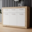 Die BACCIO Kommode von FORTE in Artisan Eiche bietet mit kompakten Abmessungen von 117,9 x 91,5 x 34 cm (BxHxT) eine stilvolle und praktische Lösung für Ihre Aufbewahrungsbedürfnisse. Mit drei Schubladen und drei Türen sorgt sie für ausreichend Stauraum. Die Kombination aus Artisan Eiche und weißen Absetzungen verleiht der Kommode ein modernes Aussehen.