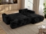 Entdecken Sie das Ecksofa OVO mit Schlaffunktion und Bettkasten in elegantem Schwarz Plüsch. Mit einer Breite von 271 cm, einer Tiefe von 195 cm und einer Höhe von 95 cm bietet es nicht nur großzügigen Sitzkomfort, sondern auch eine Schlaffläche von 200 x 155 cm. Die Kombination aus elastischem HR-Schaumstoff und langlebigen Wellenfedern sorgt für optimale Unterstützung und Entspannung. Der praktische Bettkasten und der benutzerfreundliche DL-Mechanismus machen es zur idealen Wahl für Ihr Wohnzimmer.