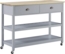 Geräumiger Servierwagen im Landhausstil in Grau und hellem Holzfarbton. Dieser Servierwagen vereint schlichte Eleganz und zeitloses Design und bietet Ihnen eine solide, hochwertige Qualität. Mit seinen praktischen Schubladen und der universellen Farbe lässt er sich mühelos in Ihr Wohnzimmer integrieren. Ideal für Küche, Esszimmer oder Bar.