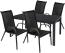 Diese hochwertige 5-teilige Gartengarnitur in Anthrazit/Schwarz besteht aus einem stabilen Gartentisch und vier komfortablen, stapelbaren Gartenstühlen. Der Tisch hat die Maße 150 x 90 x 74 cm und ist mit einem Aluminium-Gestell sowie einer Tischplatte aus NON Wood ausgestattet, die eine ansprechende Holz-Optik bietet. Die Stühle kombinieren Metall/Aluminium mit einer Textilen-Bespannung und sind ideal für Balkon und Terrasse.
