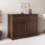 Die Kommode SAVONA im Landhaus-Stil vereint rustikales Design mit praktischer Funktionalität. Sie bietet zwei Schubladen und zwei Schiebetüren, hinter denen sich viel Stauraum verbirgt. Der durchgehende Fachboden sorgt für eine großzügige Staufläche. Die Kommode ist in Nussbaumfarben gehalten, wobei die natürliche Maserung des massiven Kiefernholzes sichtbar bleibt.