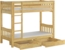 Hochwertiges Erst-Holz Etagenbett aus massiver europäischer Kiefer in A-Qualität. Mit einer Liegefläche von 90 x 200 cm bietet es Stabilität und Komfort für Erwachsene. Die hohe Nischenhöhe von 100 cm und die robuste Konstruktion garantieren Sicherheit. Das Bett ist teilbar in zwei Einzelbetten und wird mit zwei Lattenrollrosten, zwei Matratzen und zwei Bettstaukästen geliefert.